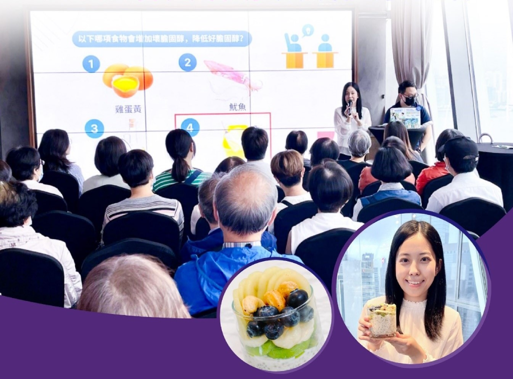 當日邀請到營養師 Amy Tsang,分享健康飲食小貼士 — 多留意食物標籤、減少進食含過量鈉、高飽和脂肪和反式脂肪等食物、增加水溶性纖維和植物固醇的攝取等;更即席示範以植物奶製作鮮果豆奶燕麥杯。